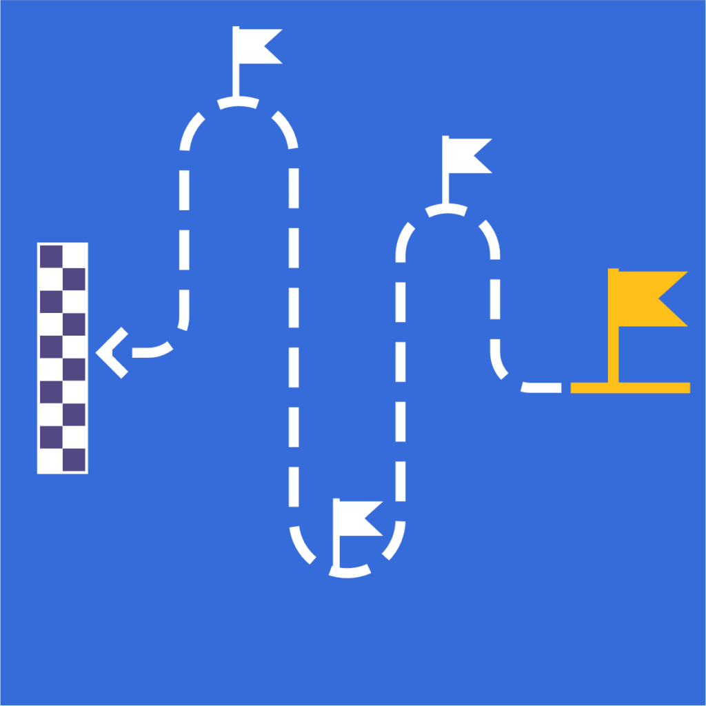 For the logo, I came up with an arrow and reused the action colours as a from start to finish. But the learning path is not always straightforward, so why not add a playful looping.